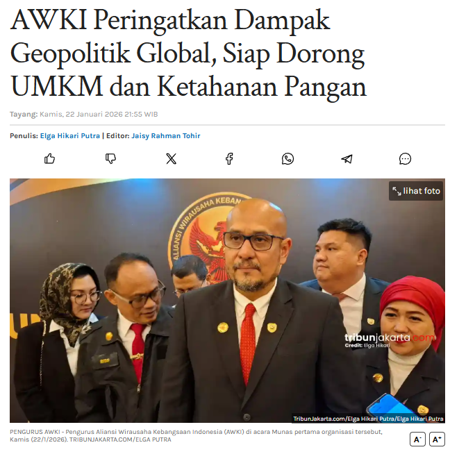 Aliansi Wirausaha Kebangsaan Indonesia (AWKI) adalah wadah pengusaha kebangsaan, alumni Lemhannas yang berkomitmen memperkuat ketahanan ekonomi nasional melalui sinergi dan integritas.